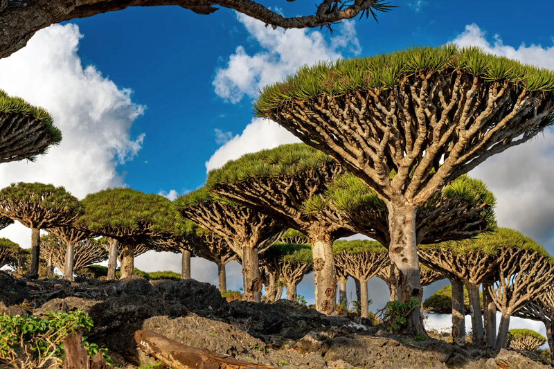 Often described as the most alien-looking place on Earth, Socotra Island is home to plant species found nowhere else. The iconic Dragon’s Blood Trees, with their umbrella-like shape and red resin, evolved in isolation due to the island’s long geographic separation from mainland Africa and Arabia. This extreme biodiversity is the result of millions of years of evolution in a harsh, dry climate, making the island look more like a science-fiction world than a real ecosystem.
