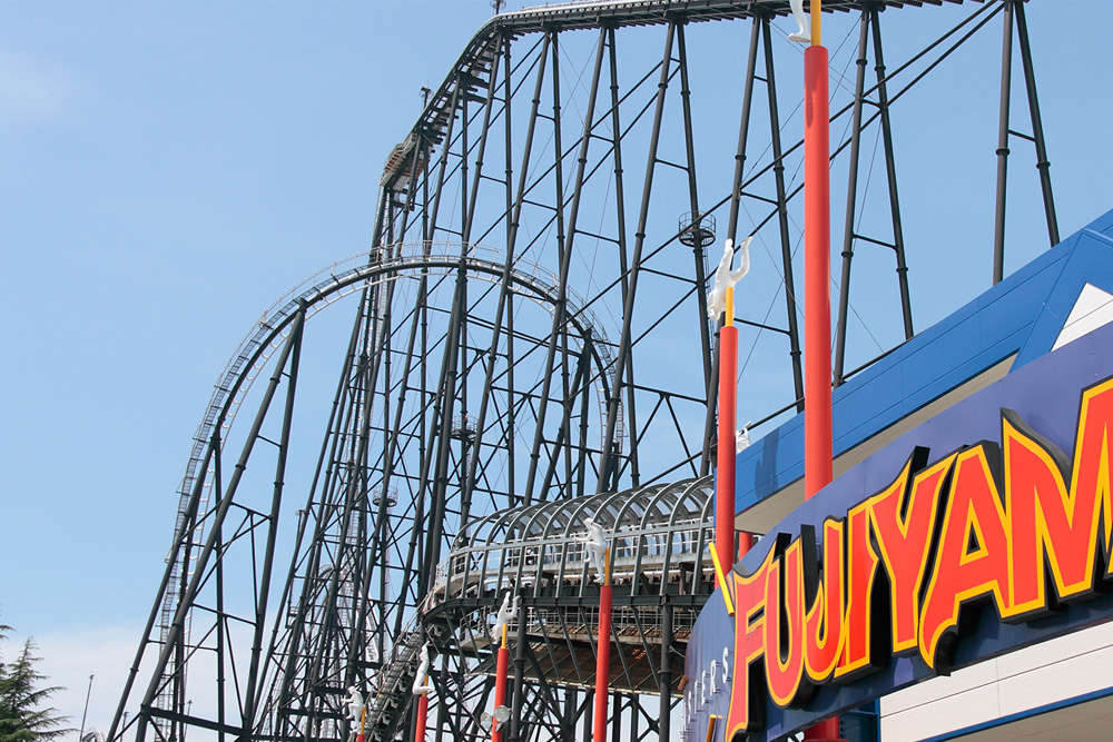 Opened in 1996, Fujiyama was once the tallest and fastest roller coaster in the world. Today, it still impresses with a height of 79 meters, a drop of 70 meters, and a top speed of 130 km/h. With stunning views of Mount Fuji in the background, it combines natural beauty with pure adrenaline.