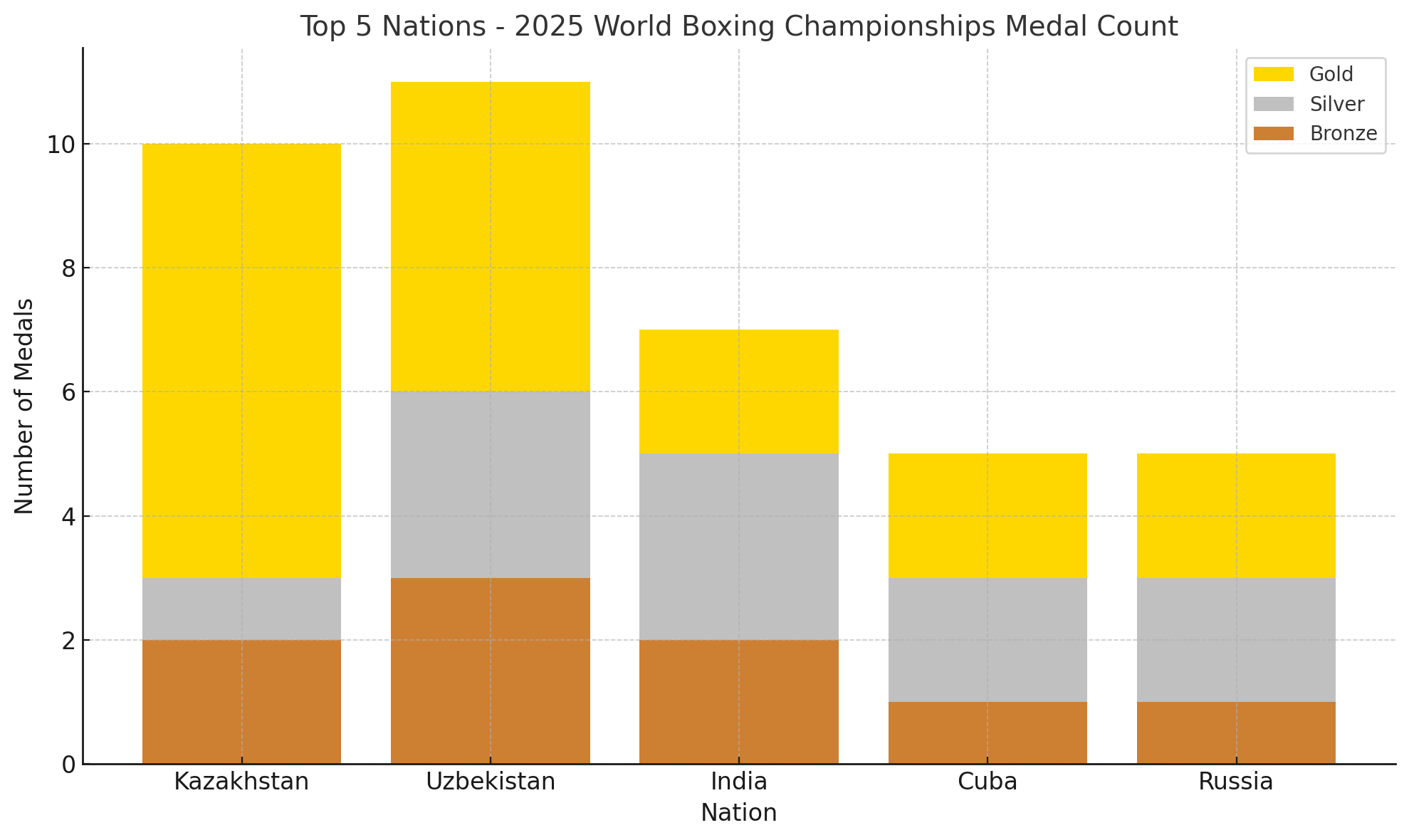 - Uzbekistan placed second overall, earning eleven medals in total, though fewer golds than Kazakhstan.