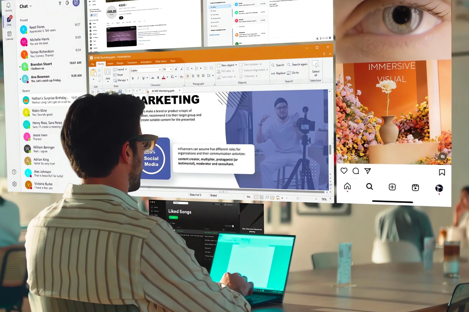 2. Mobile productivity: Use a virtual multi-window desktop when paired with a laptop or handheld PC to increase screen real-estate while commuting or in cafés.